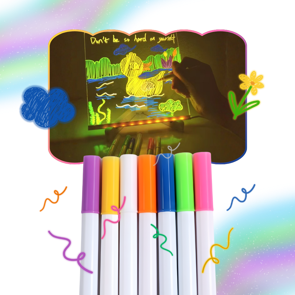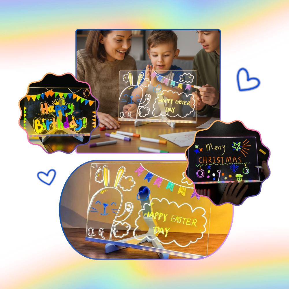 Dette Fascinerende LED Opslagstavle er mere end et redskab, det er et lærred for kreativitet og personlighed. Børn kan tegne og male med lysende streger, teenagere kan lave stilfulde daglige bekræftelser, og professionelle kan skitsere eller brainstorme på farten. Det inviterer til konstant fornyelse – skriv, tegn, slet, gentag – alt sammen under fascinerende lys. Dette er dit rum til at skabe, reflektere og kommunikere på en måde, der føles sjov, personlig og visuelt effektfuld. Fra motiverende mantraer til sene natte-skitser er det et unikt værktøj til ubegrænset udtryk.